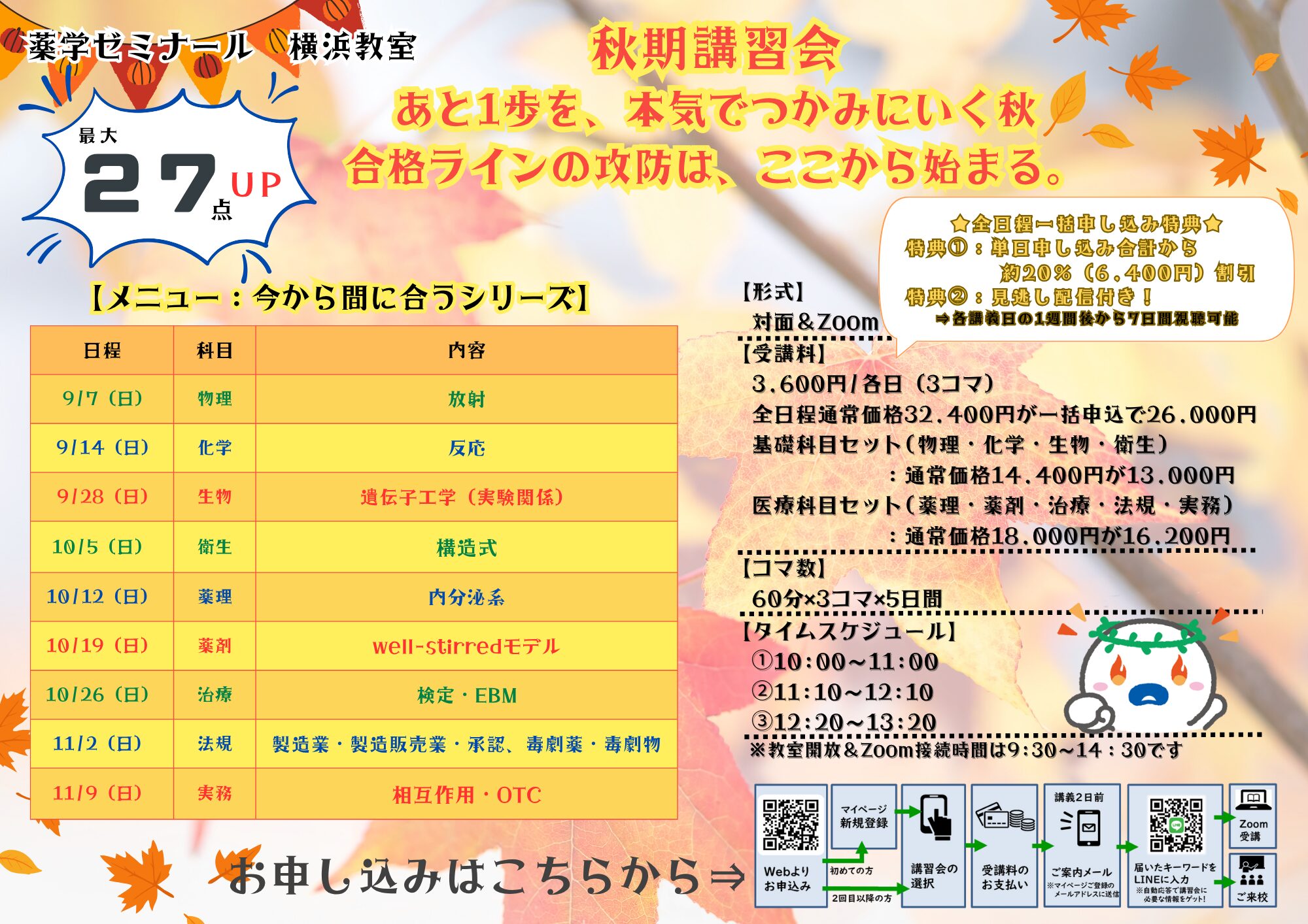 そんなあなたに、横浜教室が提案する「秋期講習会」があります。