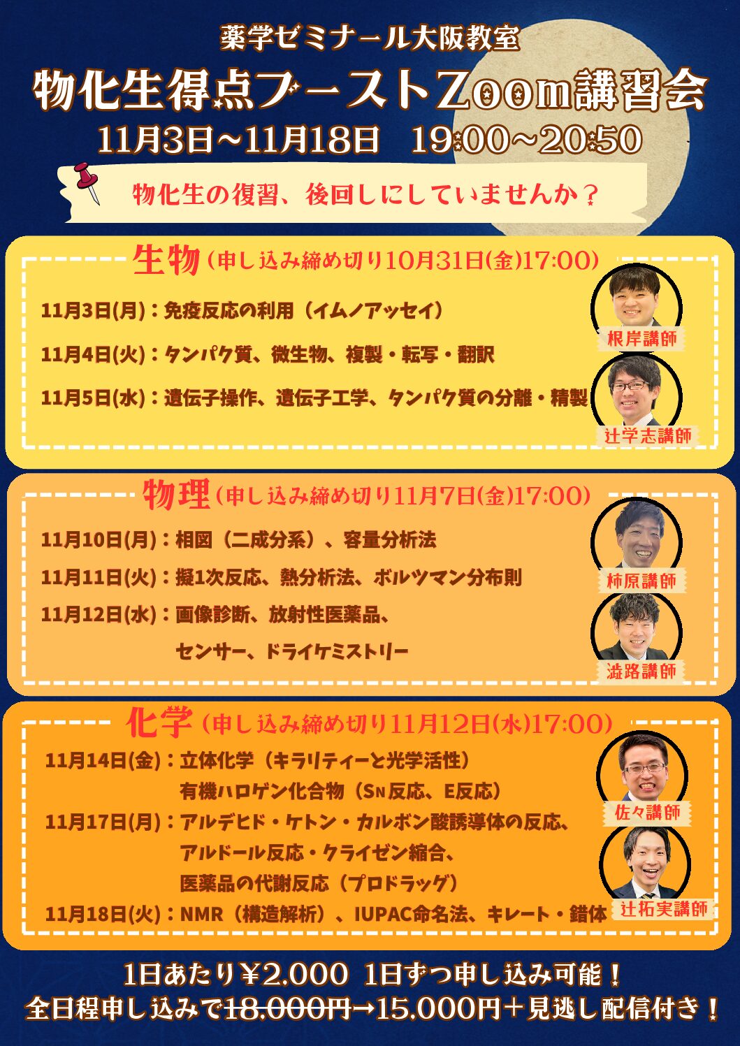 【Zoom配信のみ】平日夜間:物化生得点ブーストZoom講習会