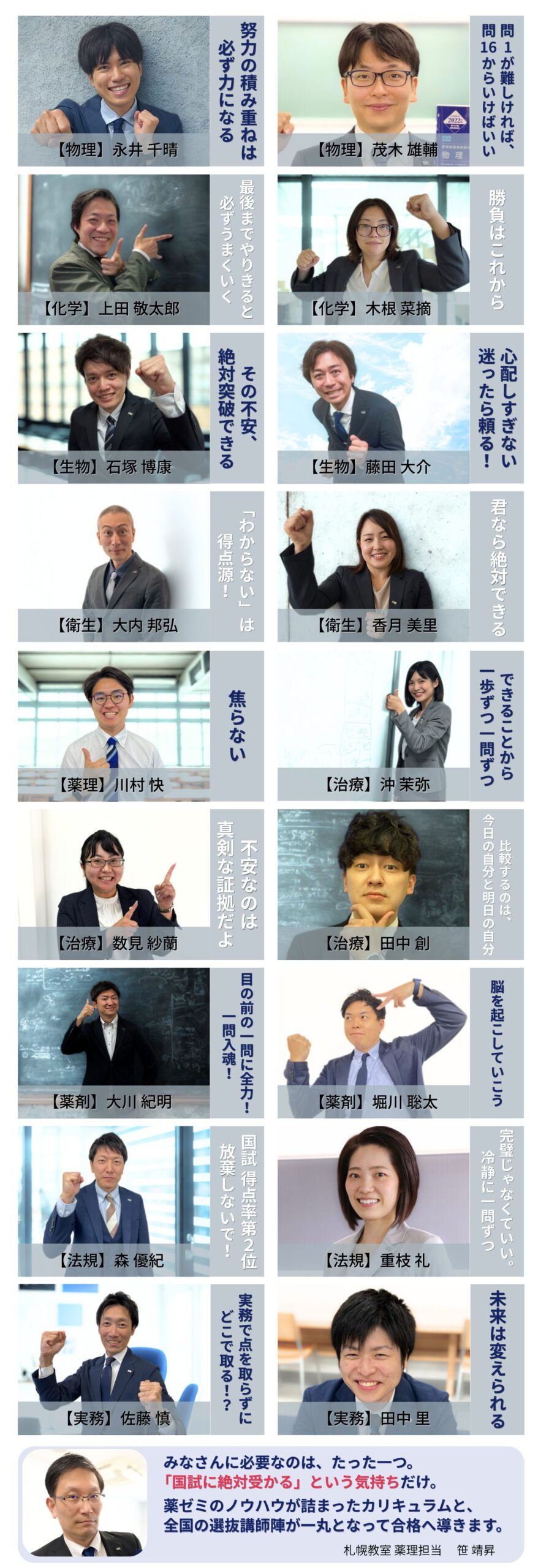 薬ゼミの合格メソッドが「ぎゅっと」詰まったカリキュラムで、111回薬剤師国家試験の合格を勝ち取りましょう!