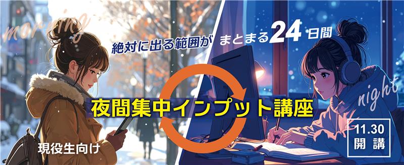 そんな皆さんの声から、現役生を対象とした「夜間集中インプット講座」の開講が決定しました!