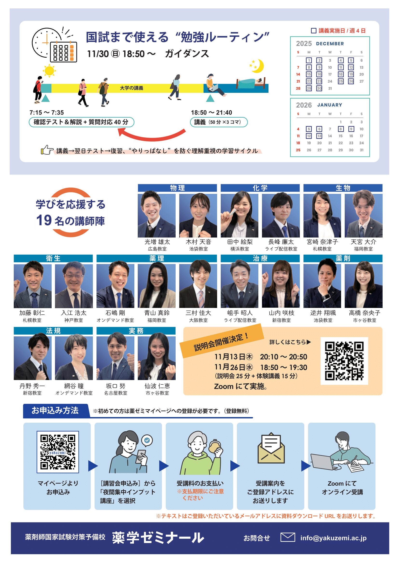 11月26日(水) | 18:50~19:30 | 説明25分+体験講義15分 |