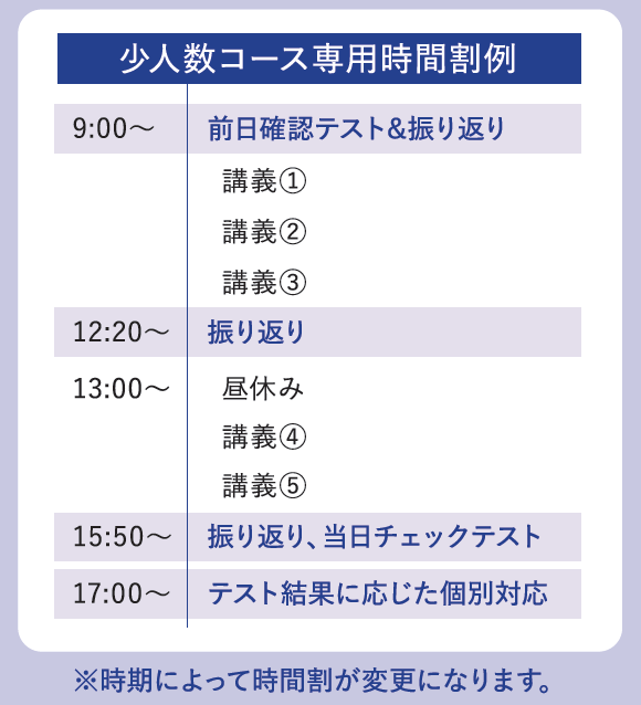 少人数コースの時間割例